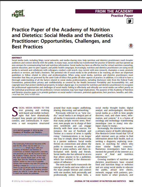 View the The Academy/CDR Code of Ethics for the Profession of Nutrition and Dietetics.